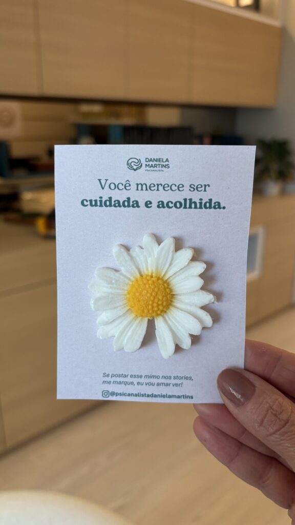 Por isso, quando falo que você merece ser cuidada e acolhida é pra você lembrar de se incluir nos cuidados. Você precisa ter espaço para se escutar, para reconhecer limites, para cuidar da própria história e das próprias escolhas é um fator importante de proteção psicológica.